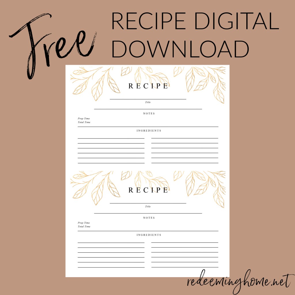 Today I have another free printable for you! This time it is a recipe card digital download. I have really enjoyed giving away all the things that have been a part of our December of Freebies series thus far.