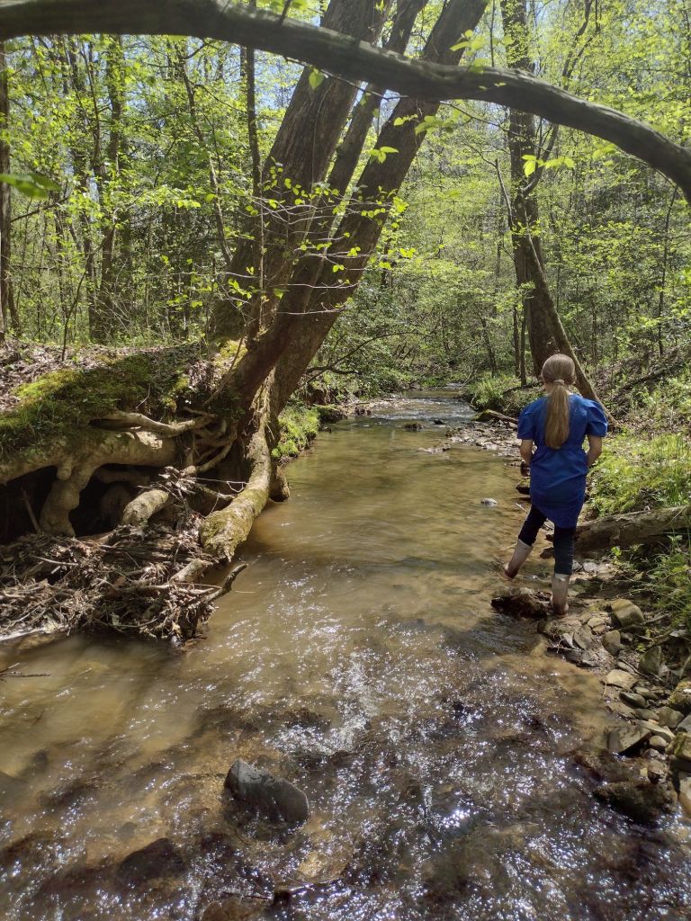We got there, and it was quite a trek to make it to the creek. Mountain properties are often like this though, and it really is to be expected. When we reached the bottom of the hill, the creek took my breath away. My daughters were glad they wore their rain boots, because they quickly jumped in.