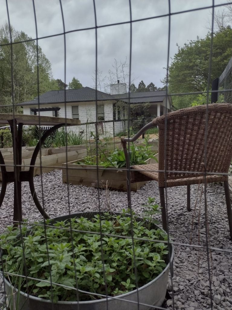 Lots of perennials are popping up, like this big pot of oregano. Friends, this plant is hardy! It is now growing in four areas around our home, and it likes to spread like crazy.
