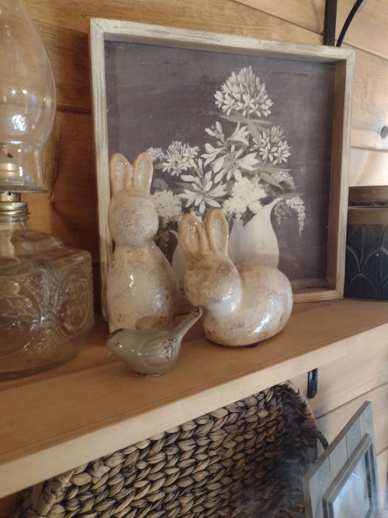 Before long, I will be switching things out to my regular neutral items, or perhaps I will start adding patriotic decor to the mix. At any rate, I’m enjoying this spring decor while I can.