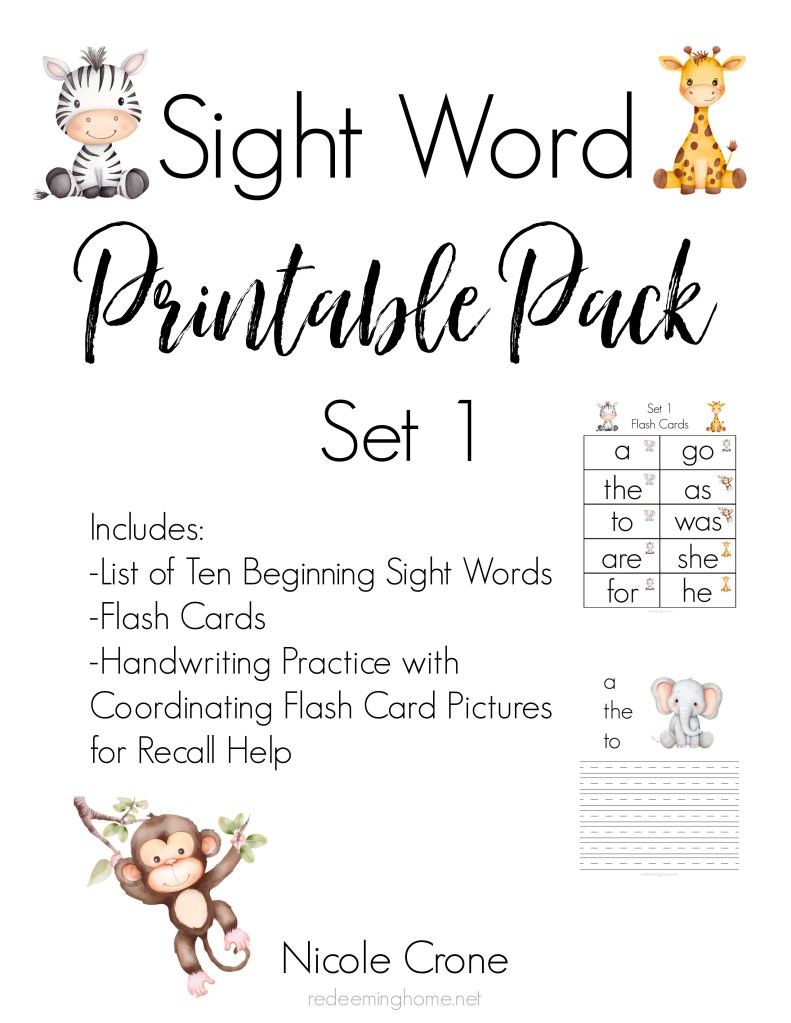 To begin with, I chose some of the simplest sight words that are definitely helpful for our children to learn. I went with an African animal theme, and I coordinated the pictures on the flash cards to the handwriting pages to help with word recognition.