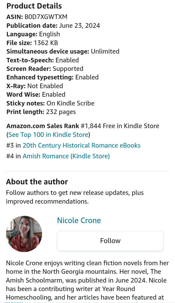 Amazon has ended the freebie deal, and The Amish Schoolmarm is now $2.99. I’d love for you to check it out. And if you enjoy it, please leave a review and share with your friends!