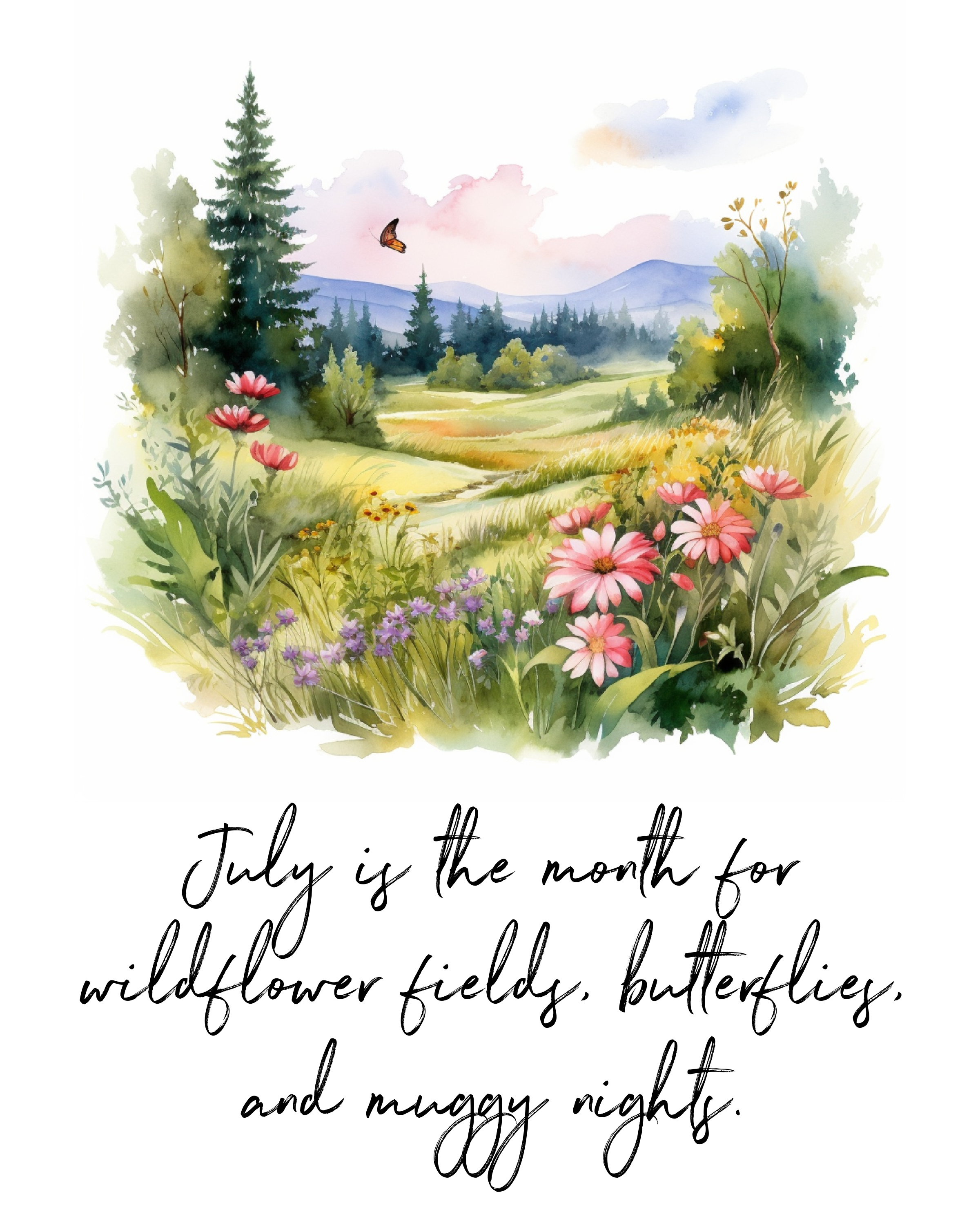 Tomorrow is the first day of July, and I have a new free printable for y’all. I formatted it in 8 x 10 sizing, and it would look so nice framed for the month.