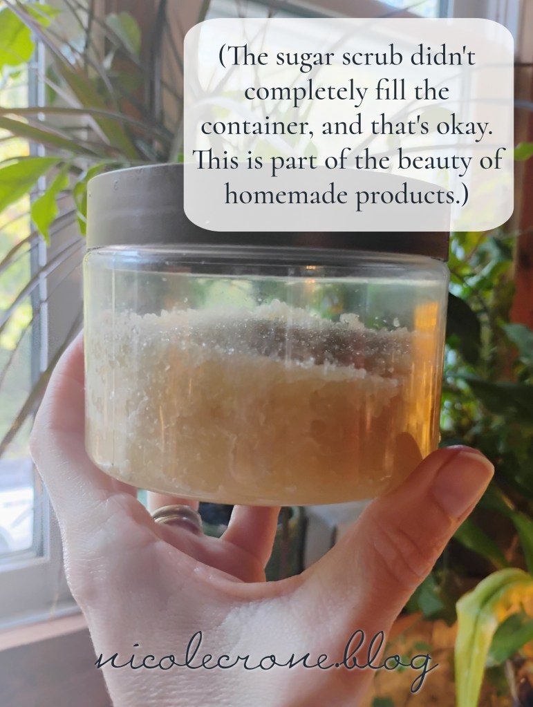 I love to keep this particular sugar scrub recipe on hand for use in the shower. Unfortunately, I had let our supply dwindle for a month or two. It was definitely time to make some more!