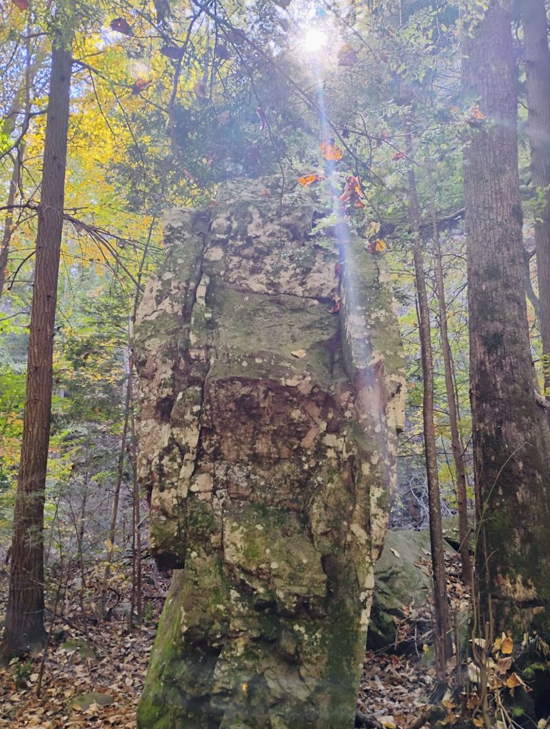 I was mindful as I walked. I took in the trees, birds, and water. I touched rocks as we walked along, noticing how cool they felt on my palm. My son calls boulders “earth giants,” and these definitely fit the description.