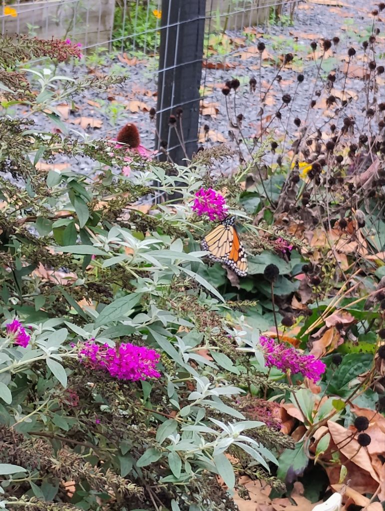 It is still quite warm where I live, and butterflies are fluttering around the garden every day. I was so happy to see this monarch so late in the season. I plan to leave the leaf litter, since so many little creatures overwinter there. I wish I would’ve realized this sooner, because we have raked leaves in the past. Hopefully many critters will be safe and sound underneath the leaves until spring comes again.