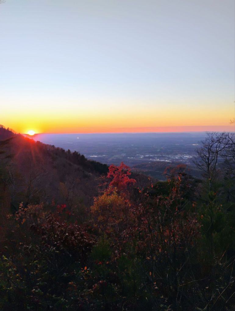 The sun is now starting to rise as the lights still twinkle below. Two of my older children are about to set off on one last hike before we go. We are only about thirty minutes from home, so we don’t have far to drive once they return.